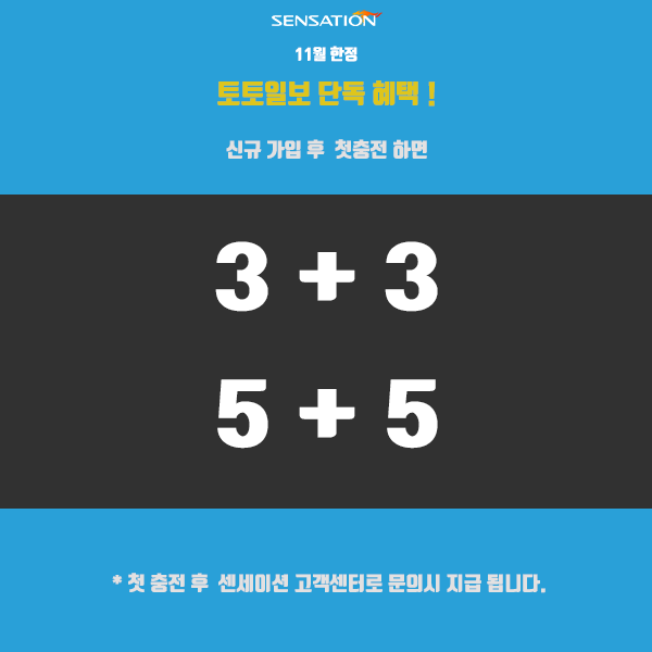 이번 첫입금 이벤트는 토토일보 단독으로 이루어지며, 센세이션 자체 입금이벤트와는 별개로 진행됩니다.